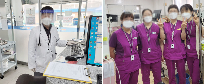 ¾Æ»êÇö´ëº´¿ø ÀÇ·áÁøºÐµéÀÌ ½ãº¼Æ® ÇöóÁ ¹ÙÀÌ·¯½º Ŭ¸®³Ê Æ÷Åͺí(¸ñ°ÉÀÌ)ŸÀÔÀ» ¾È½ÉÇϰí Âø¿ëÇÑ ¸ð½ÀÀÔ´Ï´Ù.